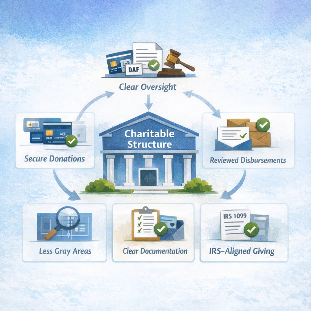 BrightLeaf Giving puts a compliant process behind the giving, so fundraising stays tied to a real charitable structure, disbursements follow clear rules, and supporters know the mission is being handled responsibly.